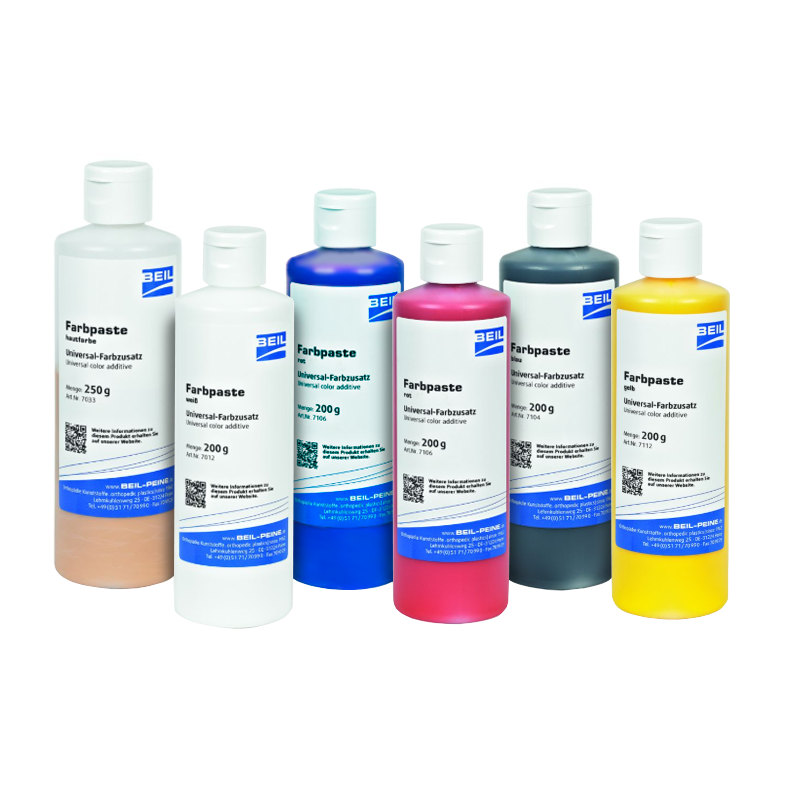 Koncentrerad färgpasta som används för infärgning av olika resin- och polyuretansystem vid ortopedteknisk tillverkning. Produkten gör det möjligt att enkelt ge laminat, komponenter eller skumdelar önskad färg utan att påverka materialets bearbetning i någon större utsträckning.